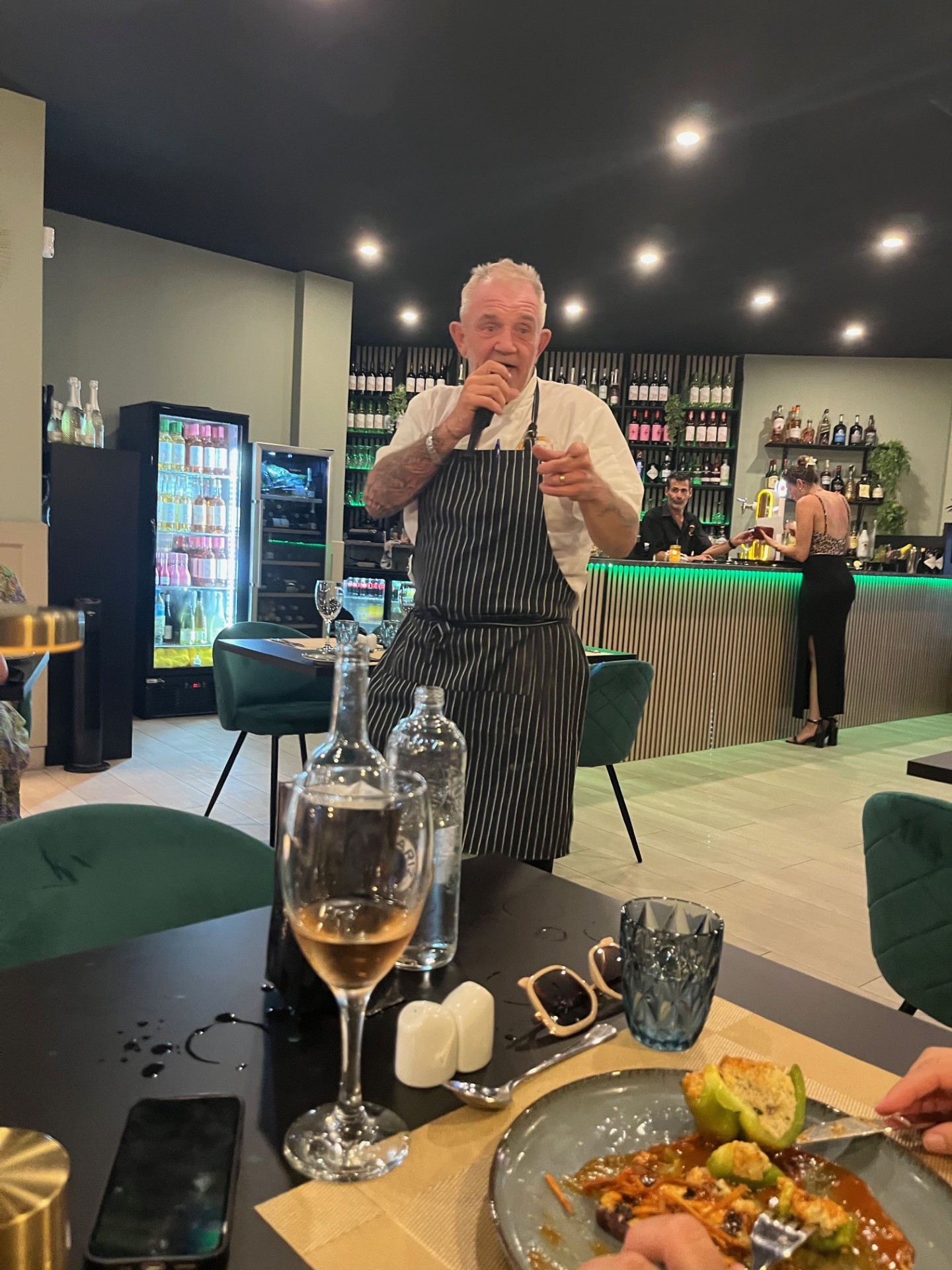 We gingen onlangs dineren bij Bojangles Bistro in het Oasis Centre in El Raso, en dat werd een avond met verrassende accenten. Het interieur is stijlvol en verzorgd, en er hangt meteen een gezellige sfeer. Maar de grootste verrassing kwam van George - de Schotse chef - die plots de microfoon vastnam en in pure Sinatra-stijl een nummer bracht. Een onverwacht intermezzo dat de avond extra karakter gaf en de gasten zichtbaar charmeerde.