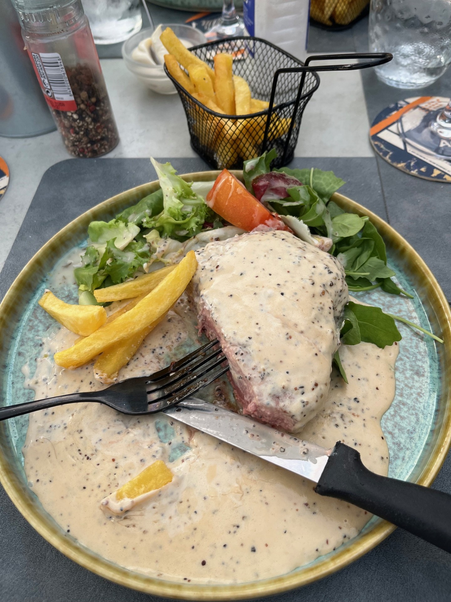 Het eten is simpelweg uitstekend. Een absolute aanrader is de steak met pepersaus en frietjes – een gerecht dat zelfs de meest doorwinterde steakliefhebber overtuigt. De pepersaus is pittig en aromatisch, een saus die je neus doet tintelen van genot. Ook de tapas krijgen lof: verse ingrediënten, smaakvolle bereidingen en royale porties.