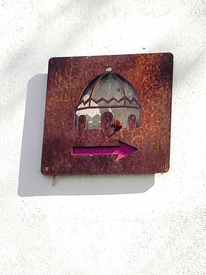 Helaas, is hier ook het spreekwoord “wel willen, maar niet kunnen” van toepassing want de spanjaarden hebben deze route aangeduid met een smeedijzeren plakaatje waarop het silhouet van de kathedraal te zien is, maar ... op de plaatsen waar je echt alle kanten uit kan, ontbreken natuurlijk zulke wegwijzers....