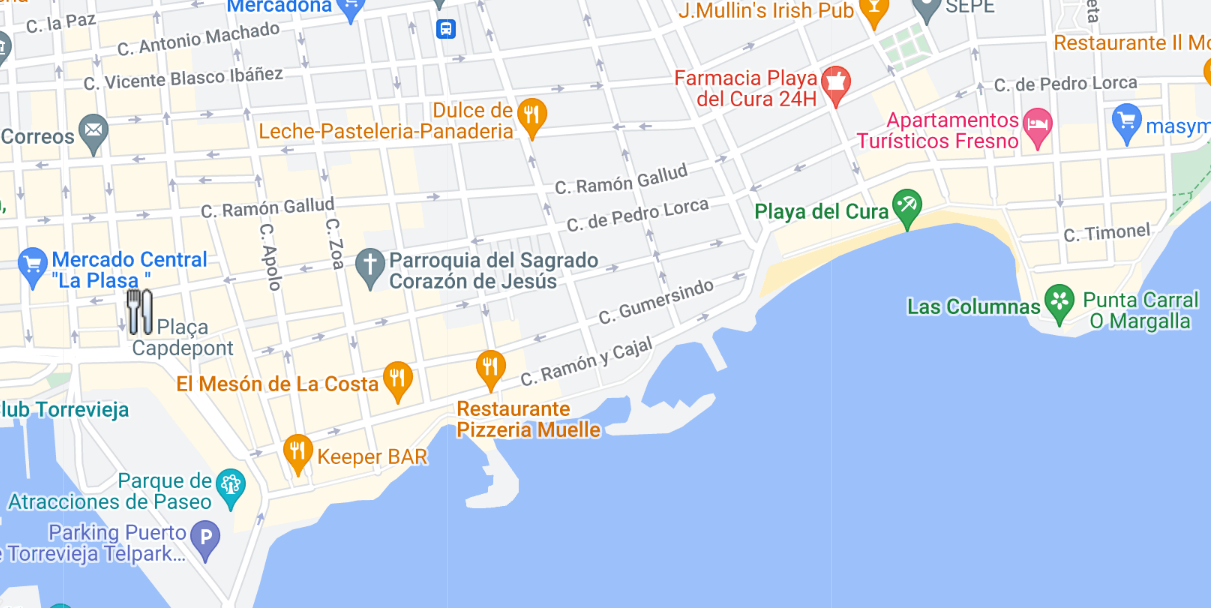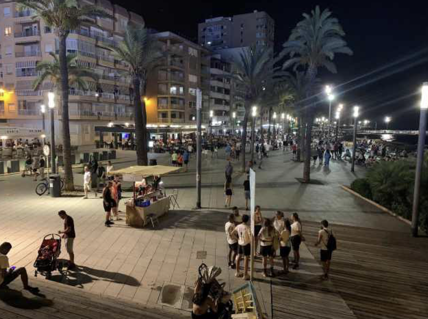 Voor wie nog nooit deze regio bezocht heeft, zal het misschien een kleine teleurstelling zijn, want de promenade (cf. dijk) van de meeste badsteden, is niet te vergelijken met wat we in België kennen. Bij ons is een dijk synoniem voor flaneren met langs de ene kant het strand en beachbars en langs de andere kant gezellige terrassen, restaurants en winkeltjes. Helaas is dit niet zo in deze brede regio waar het gros van de populatie eigenlijk uit Spanjaarden bestaat en niet uit toeristen. Zo ook in Torrevieja. Torrevieja heeft een lange kustlijn, maar niet alles is te vergelijken met onze Belgisch dijkconcept want een heel groot deel is niet meer dan een kustweg langs rotsen, baaien of huizen direct aan de zee. Hieronder hebben we proberen te schetsen welk stukje promenade echt de moeite is om in de avond over te flaneren en ergens iets te drinken of een kleinigheidje te eten.