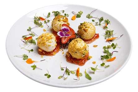 Als één van de voorgerechten had ik (koude) balletjes van geitenkaas genomen opgevuld met een krokant stukje nougat liggend op een bedje van zoete tomatensaus. Man, man... ken je dat gezegde van een engeltje dat op je tong komt plassen?. Ik had dit nog nooit eerder gegeten, maar wat een toppertje! (onthou het!!).