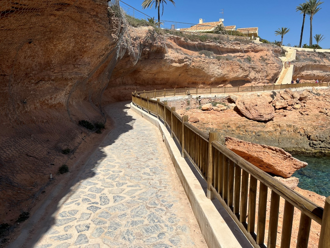 Eenmaal je drankjes/tapas genuttigd, volg je opnieuw het pad en passeer je de haven en vandaar blijft je het netjes aangelegde kustpad volgen. Je merkt dat het recent gerenoveerd is want het ligt perfect geplaveid.