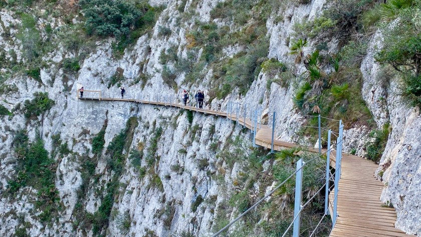 Uiteraard is de wandeling niet zo spectaculair als de ‘Caminito del Rey’ in Málaga maar het is voor veel wandelaars toch een adrenalinestoot om 60 meter hoog boven de kloof van de Amadorio rivier op een houten stellage te lopen. Ergens in het midden van het houten wandelpad bevindt zich een ‘mirador’ ofwel uitzichtpunt dat bestaat uit een glazen bodem die op 40 meter hoogte boven de Amadorio rivier is bevestigd.