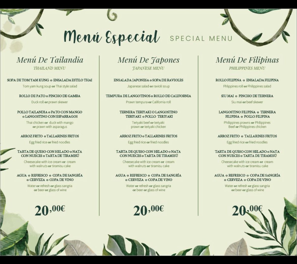 Een Japans, Thais of Filipijns menu voor ongeveer €20