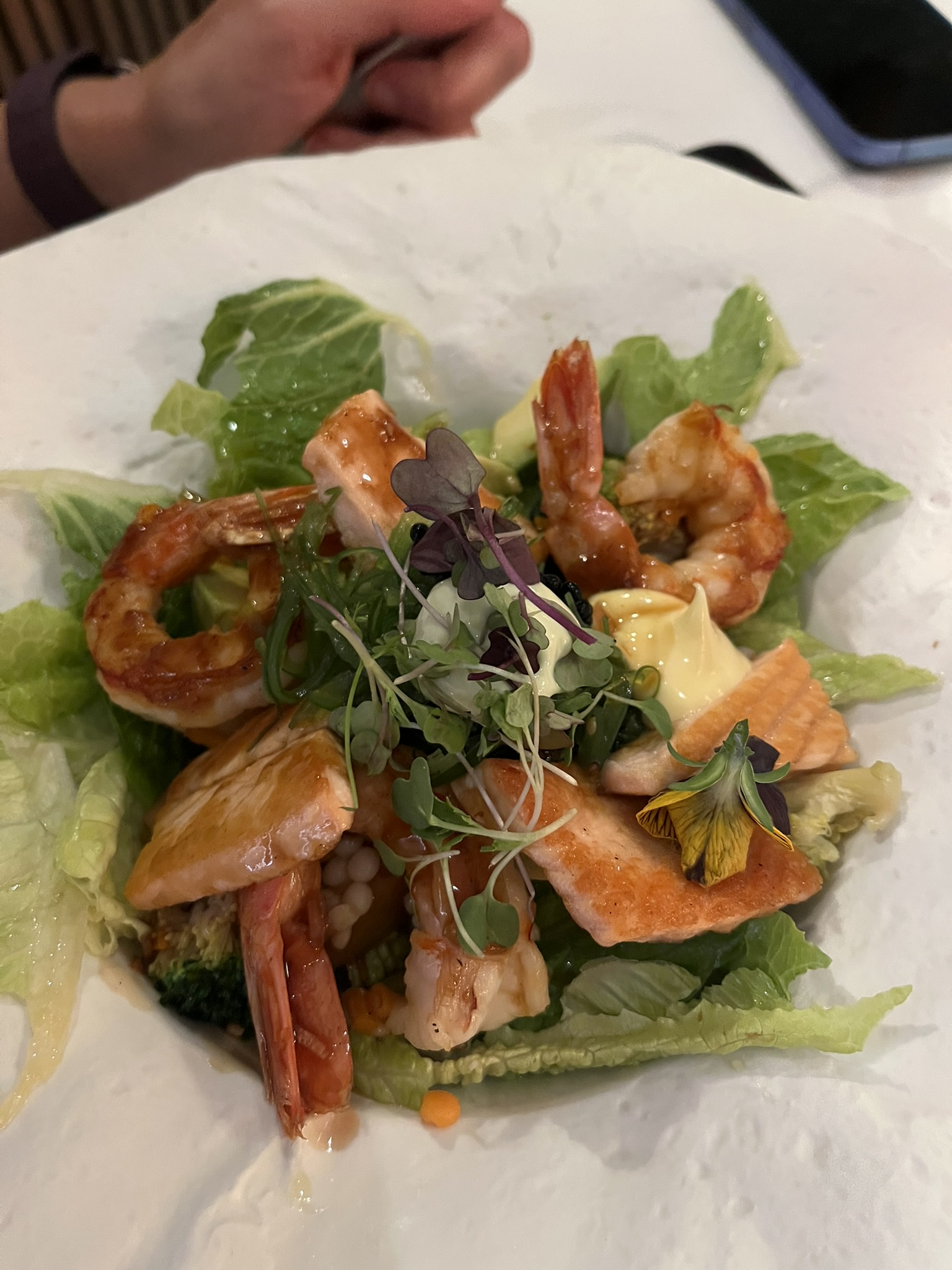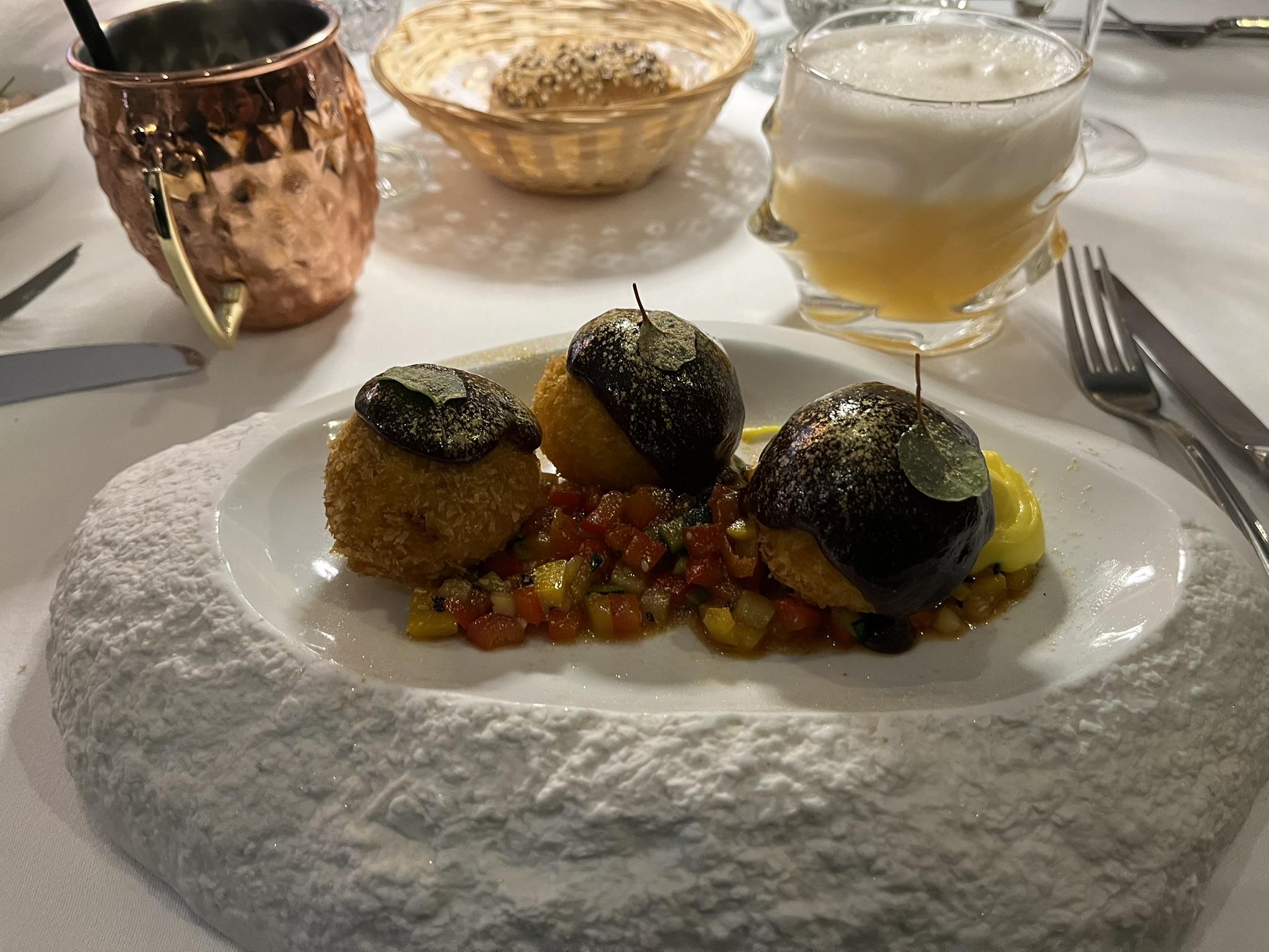 En dat doet het, in het begin toch. De voorgerechten zijn ronduit fantastisch. Qua smaak, qua presentatie – het zijn kleine kunstwerkjes. Maar na de hoopvolle start sluipt de oude vertrouwde chaos weer binnen. Net als vorig jaar worden de cocktails één voor één klaargemaakt en opgediend, wat betekent dat je al snel tien minuten met een drankje voor je neus zit te wachten op de rest van je gezelschap.