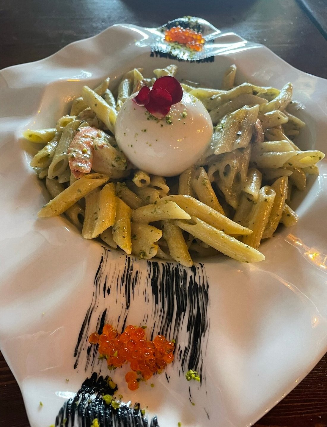 Het restaurant heeft een ruime keuze van gerechten, een dubbele open keuken waar men langs de ene kant pizza’s bakt in een echte houtoven terwijl men in de andere open keuken alles bereid wat niet pizza is. Bovendien is er een héél groot bargedeelte.