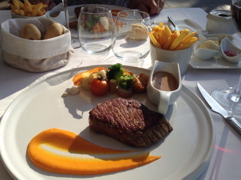 Als hoofdgerecht had ik ossehaas met pepersaus en frietjes gekozen. Een meer dan uitstekende keuze want mijn vlees was zo zacht als boter, de pepersaus was heerlijk pikant en de frietjes proefden zoals echte Belgische frieten horen te proeven. Zaaaalig! 10/10