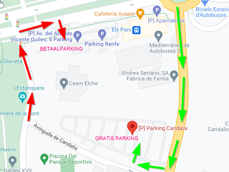 Parkeren via Waze (gratis): Estacionamiente gratuito Candalix, Elche