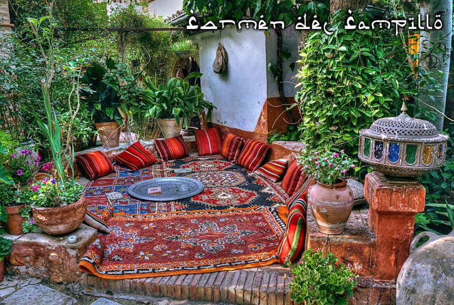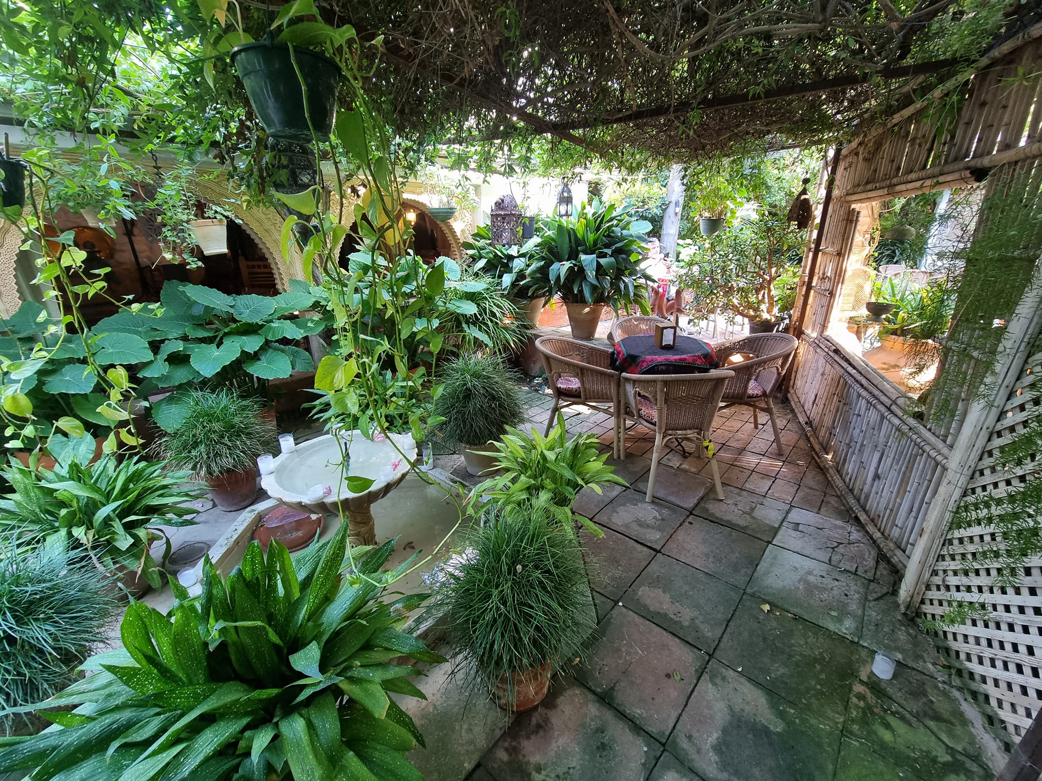 Wat je mag verwachten van Casa Marisca is een enorm domein waarvan de tuin piekfijn verzorgd is, enorm charmante zithoeken, zowel binnen als buiten. Ik denk dat er minstens 10 speciaal gedecoreerde kamers binnenshuis zijn volledig gedecoreerd in moorse stijl. En als ik zeg moorse stijl dan gaat het niet om wat schilderijen of foto’s; neen, poefjes, tapijten, lantaarns, enz.