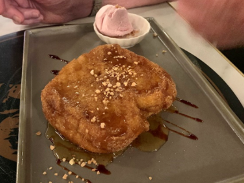 Jawadde, Arthur had de beste keuze gemaakt, een torrija is nl. een soort van heel dik wentelteefje in Baileys gebakken en geserveerd met een bol superlekker Totem ijs.