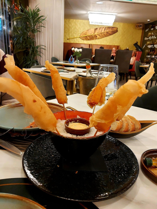 Soit, je kan al deze dingen ook gewoon zelf als starter nemen in plaats van ze te delen met het tafelgezelschap. De andere categorieën zijn de tradionele onderverdelingen in vlees, vis, rijst en desserts. Hun wijnkaart is zeer uitgebreid, maar helaas ook stevig geprijsd. We namen één van de goedkoopste flessen rosé van 28 euro, maar we moeten wel zeggen dat ze buitengewoon lekker smaakte!