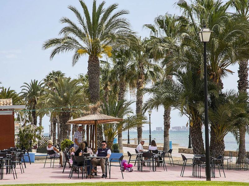 Wat meteen opvalt, is dat dit stuk kust nog een vrij authentiek karakter heeft. Veel huizen langs de dijk zijn tweede verblijven van Spanjaarden uit steden zoals Murcia of Madrid. Het zorgt voor een gezellige, lokale sfeer zonder massatoerisme. Om de paar honderd meter kom je wel een bar of restaurant tegen waar je iets kan drinken of eten met zicht op zee.