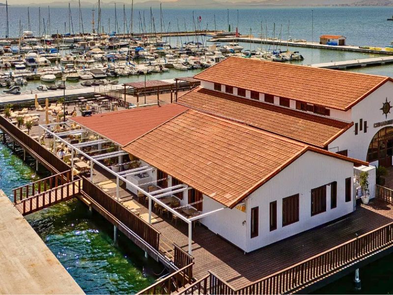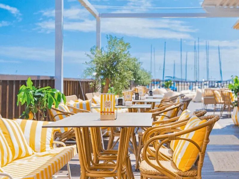 Na een zeer geslaagde lunch vervolgden we onze wandeling tot het einde van de dijk. Daar ligt de kleine jachthaven van Los Alcázares. Die zelf is enkel toegankelijk voor booteigenaars, maar vlak ernaast vind je de gezellige Armoria Beachclub met een restaurant waar je opnieuw prachtig zicht hebt over de Mar Menor.