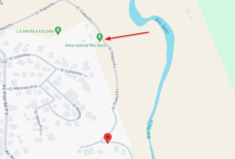 De Calle Trébol nr 7, is natuurlijk niet de exacte vertrekplaats, maar je bent er niet ver vanaf. Rij de straat gewoon verderdoor tot je aan het gebouw van het natuurcentrum aankomt. Op Google maps staat het getagd als “Area natural Rio Seco” en “Festival Madre Tierra”.