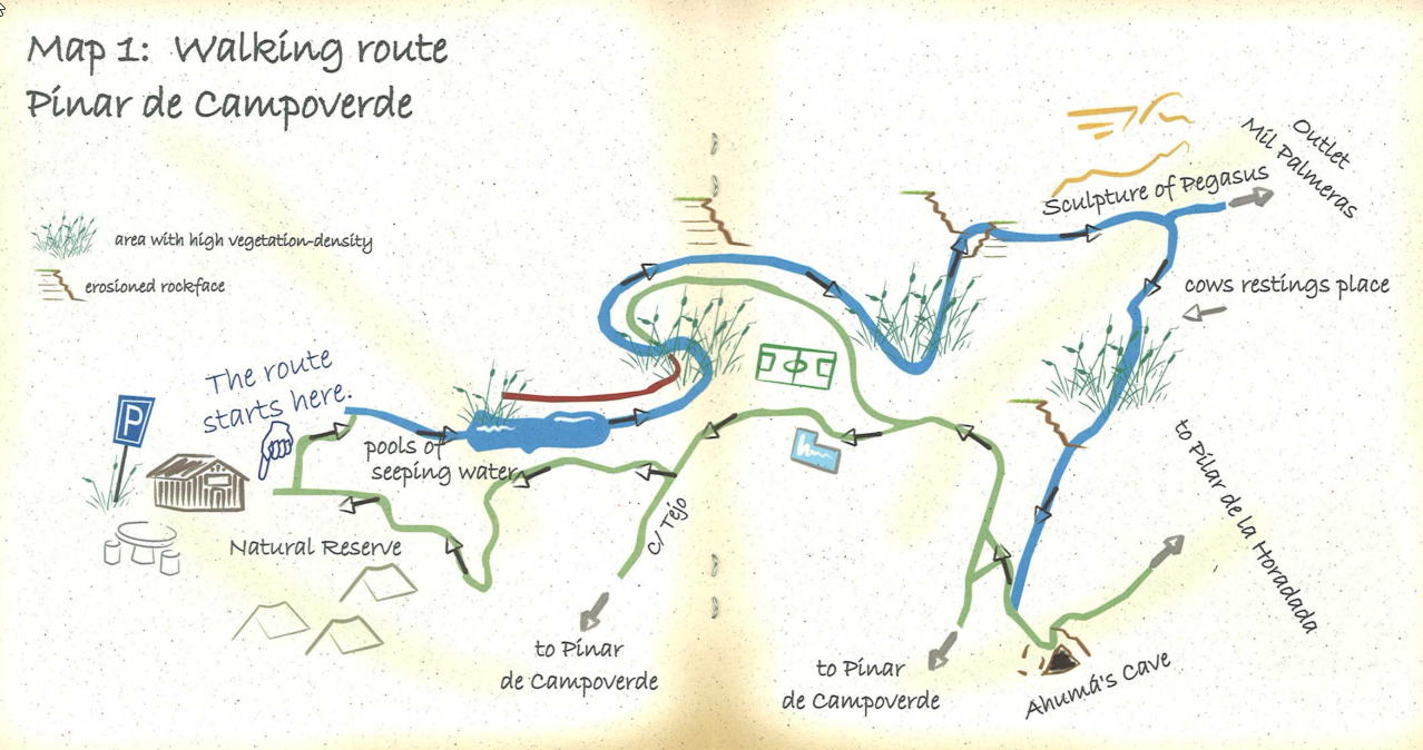 Op weg naar de vertrekplaats kan het zijn dat je wegwijzers naar volgende bestemmingen tegenkomt: "Ruta Senderista Rio Seco", of "Ruta Pinar de Campoverde", "Area Natural Rio Seco" of “Polideportivo Area Natural”. That's the way to follow!